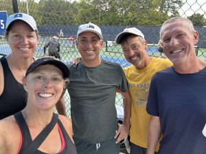 Over the weekend, The Farm team had to place in the top four teams out of seven, to qualify for Championship Sunday in the 4.0 Combo 18+ division. With the toughest draw in the tournament, the team lost to VA – Weiss by only three points and NJ – Ibrahim by one point on the first Friday of competition. Friday’s matches were outdoors and the conditions were challenging with high temperatures and extreme humidity. With rain in the forecast, the Saturday and Sunday matches were moved into the Performance Pickleball facility for the remainder of the tournament.